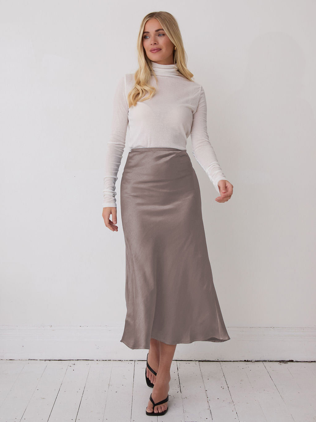 If you only have one skirt in your wardrobe, make it this. A true classic, our beautiful satin skirt is cut on the bias in a midi length and crafted in premium heavier weight satin which falls fluidly over the body to create a flattering silhouette to enhance all shapes. The elasticated waistband ensures comfort and style so is perfect for all occasions. Dress up our matching satin shirt and heels, or down with a simple tee, blazer and trainers - the ultimate versatile staple!