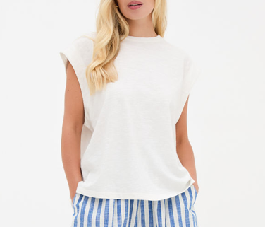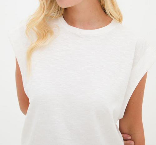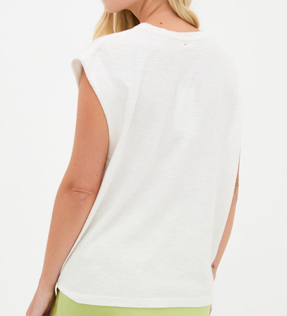 Crafted from 100% cotton slub jersey, our Vivi sleeveless t-shirt offers premium quality with a soft, breathable feel and a naturally textured finish for effortless everyday style. The subtle slub texture creates a relaxed, laid-back look while maintaining a high-end, durable finish that will last season after season.